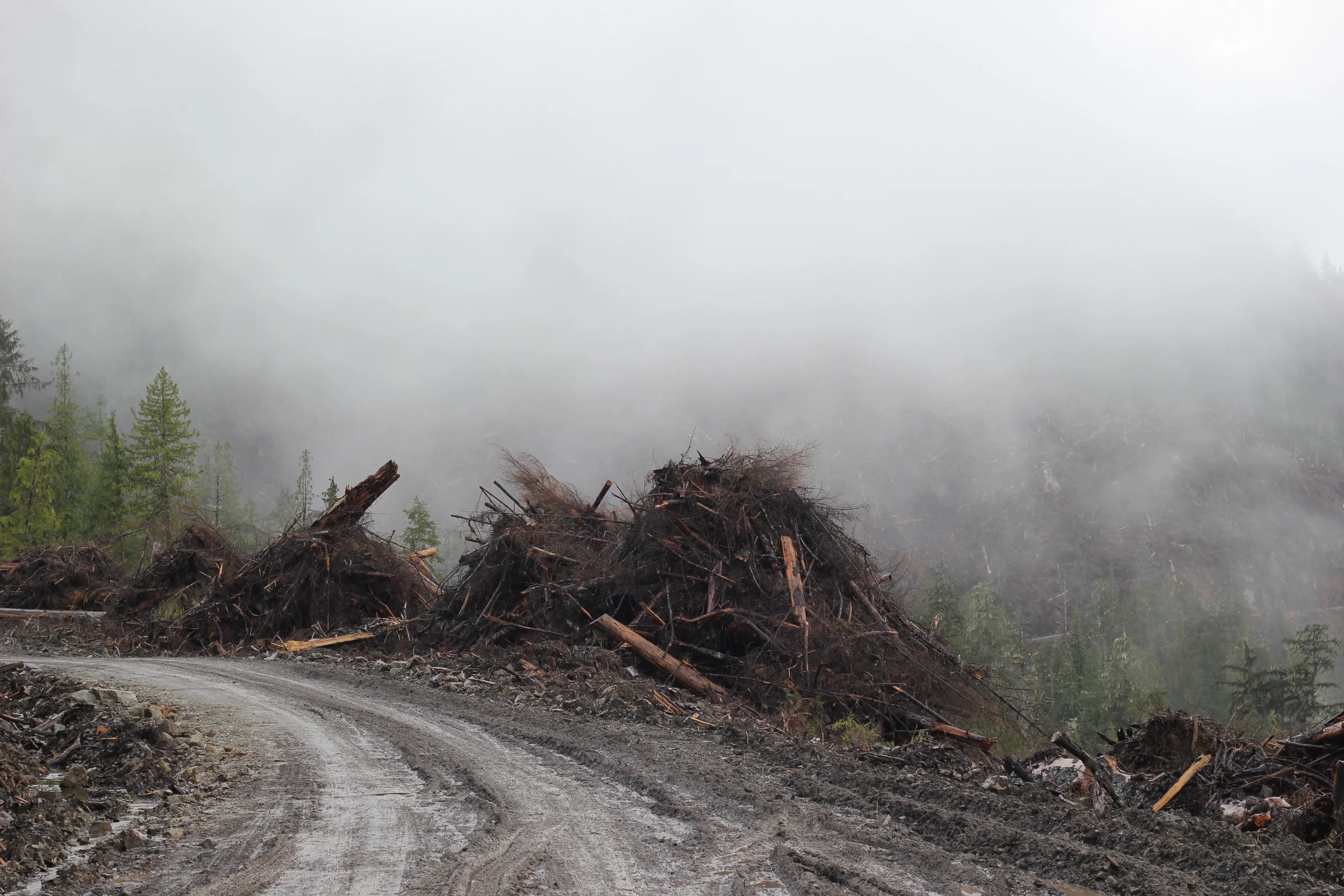 The fog cannot hide the wreckage,